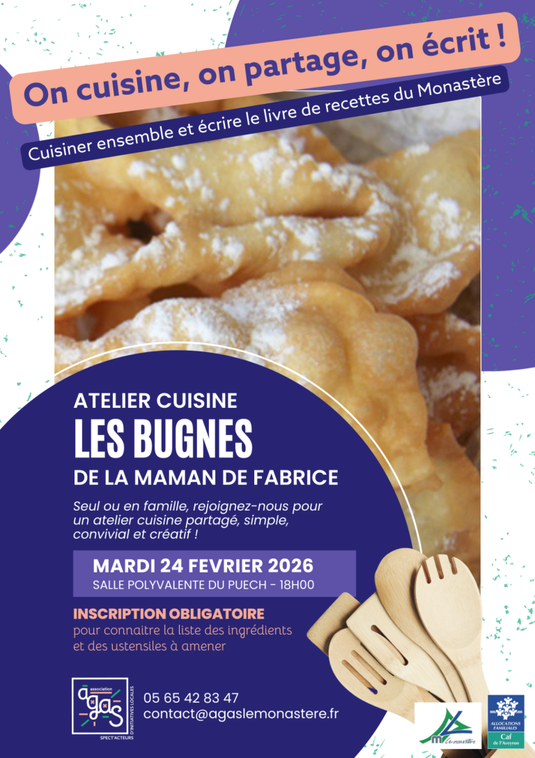 On cuisine, on partage, on écrit Et si on se retrouvait autour des fourneaux pour partager bien plus qu’une recette ? L’atelier « bugnes » ouvre une série d’ateliers cuisine animés par les habitants du Monastère, chacun venant transmettre sa spécialité, ses astuces et un peu de son histoire. Ensemble, nous cuisinons, nous dégustons… et […]