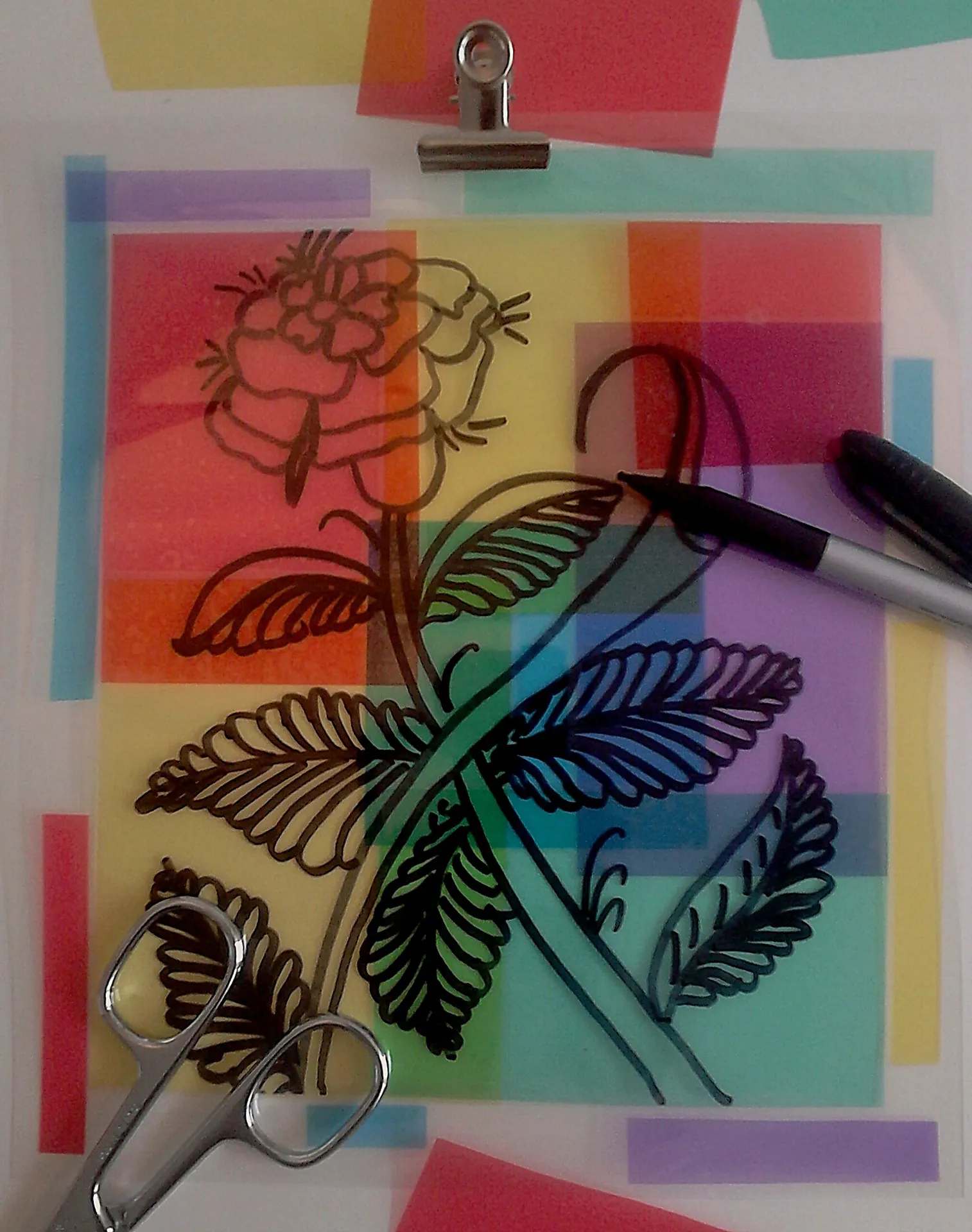 Après avoir choisi un motif parmi les vitraux du musée, chacun reportera ces différentes parties sur des feuilles d’acétate colorées. Ensuite, nous recomposerons l’ensemble à la manière d’un puzzle sur une feuille de rhodoïd. Vous n’aurez plus qu’à réaliser le cerne noir, puis à installer votre composition sur une vitre pour le mettre en valeur.