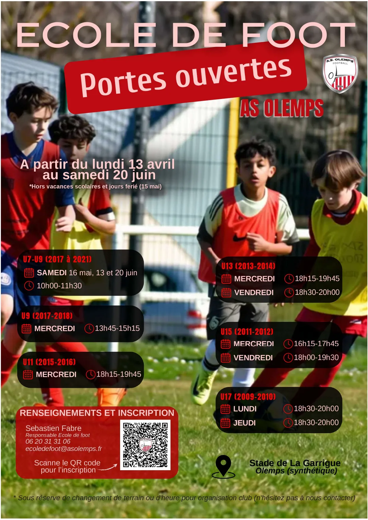 Pour toutes informations veuillez contacter Sébastien Fabre à ecoledefoot@asolemps.fr ou 06 20 31 31 06